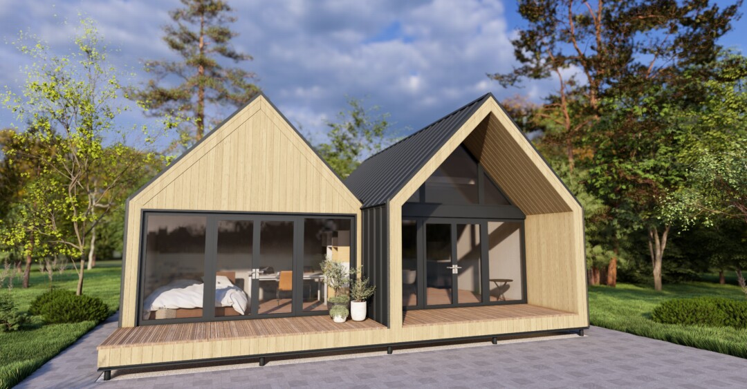 Our self-assembly house kits offer flexible interior layouts, and the base configuration does not include materials for internal partitions or finishing. You can finish the interior using any materials available on the market, such as imitation timber, paneling, or furniture-grade plywood. This house is made up of two BARN-style blocks, forming a functional and modern design.