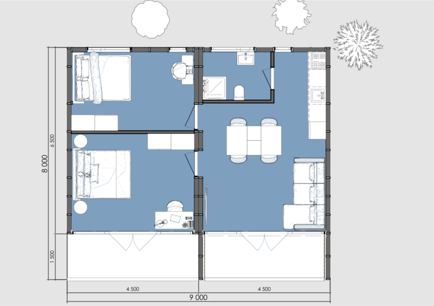 The house kit comes without interior partitions, and the layout is purely advisory. This means you have the freedom to design the interior and customize the space to suit your needs.