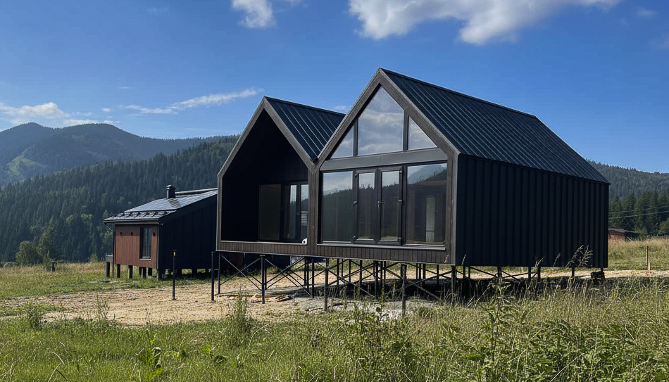 To build the house, you will need to prepare the foundation yourself. This can be screw piles, concrete pillars, or any other type of foundation. For example, the estimated cost of installing a screw foundation with 15 piles, depending on the terrain, is between 40,000 and 60,000 UAH.